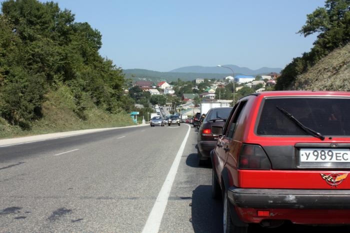 Джубга — город в котором у большинства автомобилистов состоялось первое свидание с морем. От Ольгинки 28 километров, а мы в дороге уже час. Пробки, скорость не выше 30, но все таки выезжаем на М-4 где стало гораздо свободнее.
