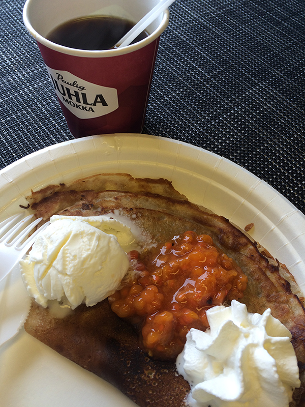 Осталось определиться, где я и как выйти на трассу Ивало, это было сложнее. Встав на трассе на аварийку, разложив карту(это не просто карта, это рулон обоев) Даже не успела подумать, как остановился парень норд. знания языка нет, поэтому с помощью богатых жестов объяснилась и он предложил проводить меня на трассу. Ну, вроде все норм. Через 6 км нам пожелали счастливого пути и мы вручили презент бутылку водки, парень был счастлив, мы тоже. Путешествие началось. Проехав по ночной трассе около 100 км, понимаю что что то пошло не так. Ночь, дождь, на трассе за два часа ни одной машины, где я? Дочь спит на заднем сиденье у неё все норм, у меня сложнее указатели на норвежском с финской картой совсем не вяжутся.Я не из тех, кто по мху, ветру и оленьим какашкам может определить местоположение. Еще через 30 км вижу знак Tana bru, оказывается иду по Е6. Не планировала конечно, но куда деваться. В Норвегии заправки работают с 7-23, мотелей на трассе я не видела. Всю ночь дождь, туман, серпантин и абсолютно пустая трасса!!! Городов нет, лишь пару домиков можно встретить. Ночи тёмные, ужас. В 4 утра вдруг в свете фар появляется бегущий скелетик — бежит бодро так в попутном направлении. Ну, думаю приехали!!! поравнявшись с бегущим скелетиком вижу, это женщина в костюме со светоотражайкой по руками, ногам и на спине тонкие полосочки в виде ёлочки светоотражающих лент. Производители спортивных костюмов хоть сами видели как это в ночи выглядит? я понимаю скандинавы на безопасности помешаны, но это жесть! Куда бежала тетенька не спросила. В 6утра пересекаю условную границу с Финляндией и можно выдохнуть. В ближайшем киоске покупаю сим карту 5евро и доступ в волшебный мир Интернета открыт!!! теперь есть все и навигаторы и интернет, нам нужно в Рованиеми на Родину Санта Клауса или как его называют в Финляндии Йоулупукки.Стоянки, мотели, заправки, кафе, магазины все по трассе. После норвежской трассы жизнь кипит. По дорогам ходят олени, очень красивые и довольно упитанные.Обязательно остановитесь в кафе на трассе, восхитительные толстые блины с морошкой, мороженным и взбитыми сливками и кофе это наверное дух Финляндии. Заплатив 6 евро за блин и 2 евро за кофе, можно насладиться прекрасным видом на озеро. Эх, жизнь удалась! Туалеты практически на каждой стоянке, тёплые, чистые, с туалетной бумагой, раковиной и мылом. Я правда в восторге, потому что на обратном пути по России создаётся впечатление, что наши водители в туалет не ходят, вообще. Ну, нет туалетов! только кустики. Наш путь лежит в Рованиеми,80 евро на двоих забронированный на Booking.com.Очень приличный отель, бассейн, сауна, завтрак шведский стол включены.Плюсом в номере мини кухня и холодильник. С утра завтрак удался, как истинно русские туристы перепробовали все, в карманы складывать не стали, должны же быть у нас хорошие манеры. Деревня Санта Клауса примерно в 7 км от Рованиеми и находится на трассе. Рядом заправка Neste, где можно недорого и вкусно перекусить. Деревня Санта Клауса работает круглый год с 10.00-17.00.Приехав туда, сразу окунулись в атмосферу Рождества и не важно, что на улице сентябрь. Почта Санта Клауса, как музей, тут и сотни писем детишек, и сувениры, и куб с пустышками.продавцы в рождественских нарядах.Само посещение деревни бесплатно, но вот фото с Сантой 30 евро. Дороговато то, но стоит того. В презент от нас Санта получил