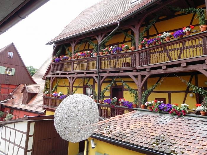 Характерной особенностью такого двора является многоуровневая галерея, богато декорированная цветами и вьющимися растениями. Уголок Эльзаса в самом сердце Германии.