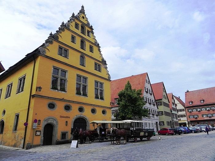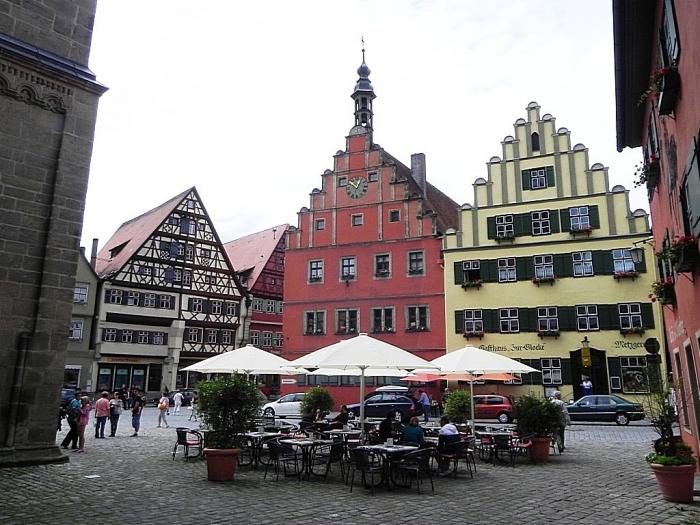 Но не собор св. Георгия является главным символом Динкельсбюля. Его своеобразной туристической витриной стал Винный рынок, вдоль которого выстроились в ряд здания с шикарными и неповторимыми фронтонами. И даже здесь есть свои фавориты – великолепная пятёрка.