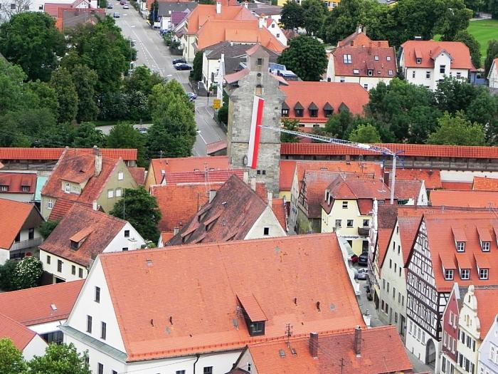 Став на цыпочки, от её подножия можно было наблюдать замечательную панораму с крышами Динкельсбюля, где доминировали покатые своды собора св. Георгия.