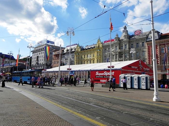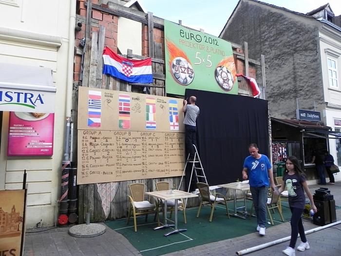 Но совсем скоро здесь станет очень шумно и многолюдно, поскольку весь квартал превратится в единую фан-зону – вечером на Евро суперматч: Хорватия-Италия. Приготовления к этому событию в самом разгаре.