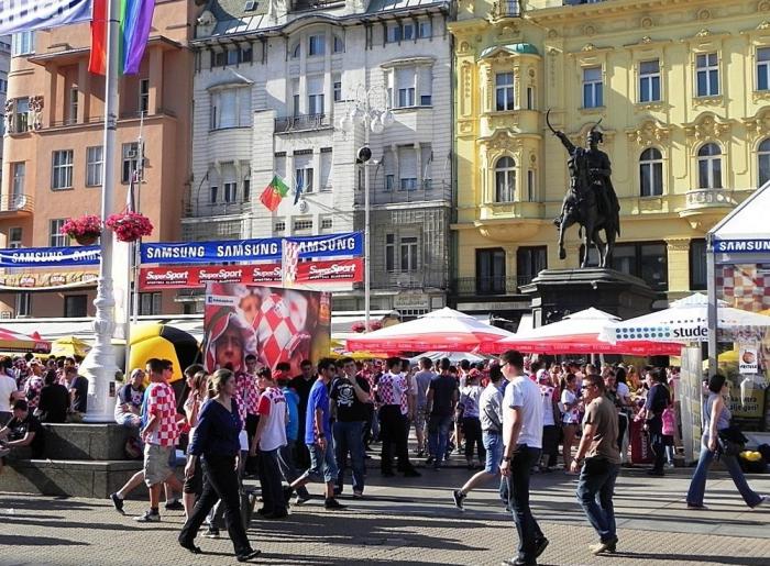 Но в день нашего посещения площадь Бана Йелачича находилась во власти футбольных фанатов. И сам король, гарцующий на коне, смотрелся здесь неуместно.