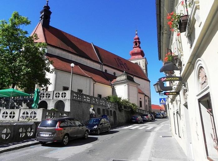 В Птуе три основных центра притяжения: замок, Словенская площадь и Городская площадь. Их расположение позволяет «замутить» отличный кольцевой маршрутик с непременным выходом на набережную Дравы. Ближайшей к нам была Словенская площадь, туда и направились. Но как-то у нас с ней не сложилось. Сначала, немного не доходя, Маша нырнула в монастырский дворик, где её традиционно заинтересовали розы и прочая флора.