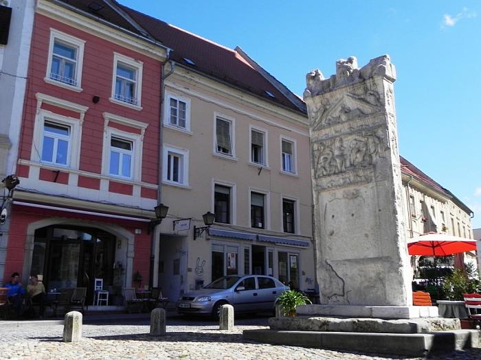 Покинув пределы монастыря, мы сразу же оказались на краю Словенской площади у монумента Орфею. Этот мраморный памятник даже в масштабах Словении представляет огромную ценность, поскольку воздвигнут ещё в римские времена в честь Марка Аврелия. Забавно, что в Средние века монумент был «унижен», поскольку его превратили в позорный столб.