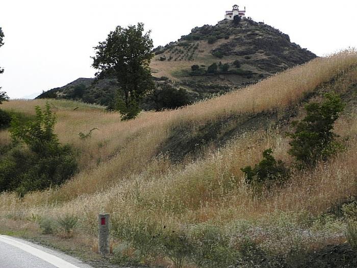 Метеоры (Μετέωρα) по пустынным, словно на Луне, дорогам оказался не скучным. Местность была пересечённой, поэтому и симпатичной. На вершинах холмов то тут, то там возникали церквушки. А вот выгоревшая трава напоминала о конце августа, несмотря на то, что на календаре лишь конец июня.