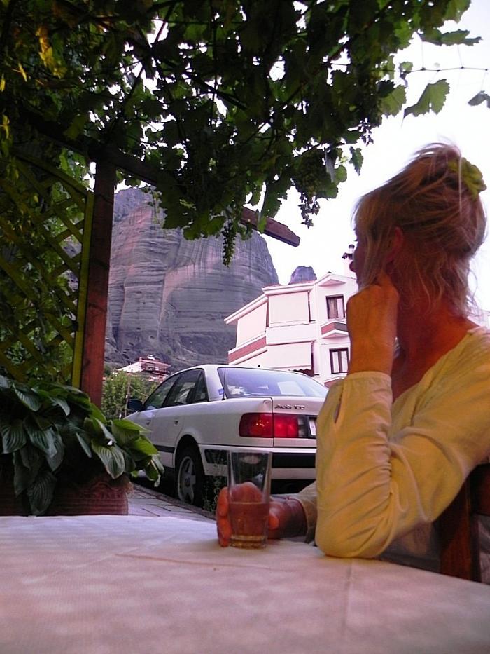 «To Paramithi», которую нам порекомендовал хозяин отеля. Оказалось, что её и LP основательно рекомендует. «Приземлились» на улице, откуда открывался отличный вид на Метеоры.