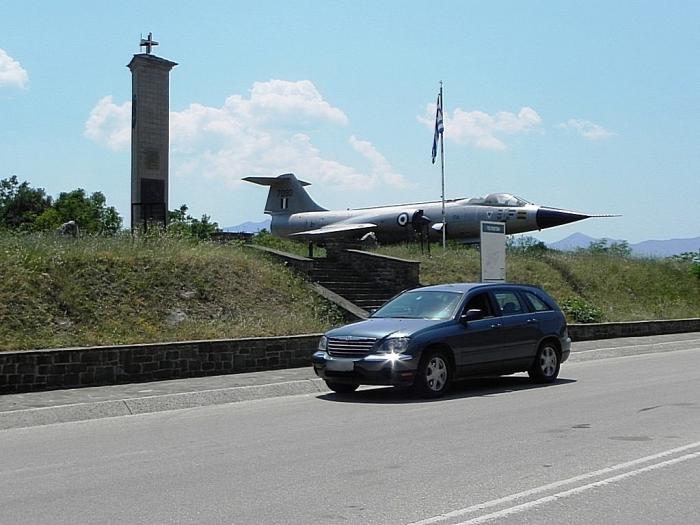 Lockheed F-104 Starfighter, который в своё время успел установить кучу мировых рекордов скорости и потолка полётов. Достаточно сказать, что это первая машина, сумевшая преодолеть барьер скорости в два маха. Осталось лишь загадкой, что данный экземпляр самолёта делал рядом с обелиском, посвящённым Второй мировой войне.