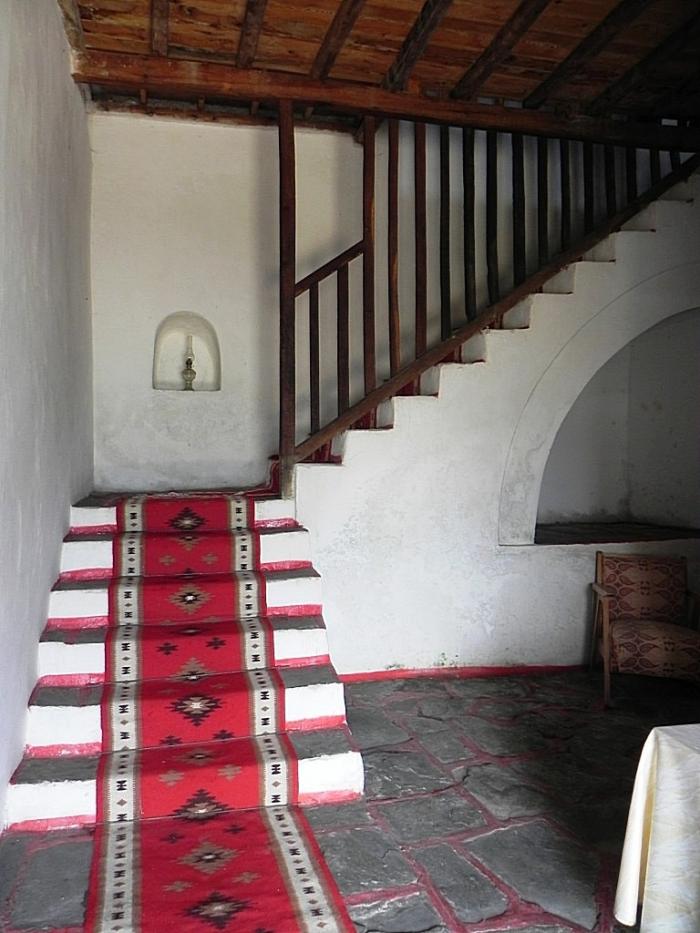 Этот дом-музей находится на попечении пожилой семейной пары, проживающей по соседству. Если стоит хорошая погода, они тусуются во дворе в компании друзей. Погода была отличная, поэтому никого нам искать не пришлось. Увидев нас, дедок жестом пригласил пройти внутрь, а сам остался с гостями. Вблизи дом Зекате нас просто ошеломил. Это действительно оказалась небольшая крепость с бойницами на первых этажах – две башни-близнецы, соединённые большим двухарочным фасадом.