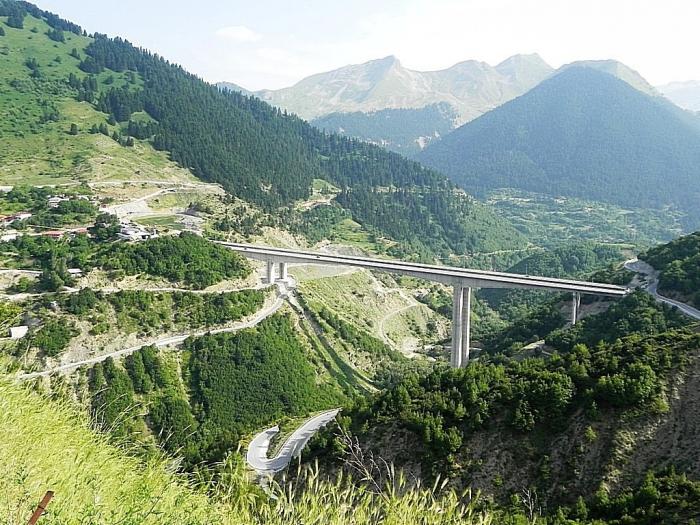 Как это часто бывает, после границы рельеф местности резко изменился – дорога вклинилась в горы, и ехать стало веселее. Но меня в этот момент мучил другой вопрос. Из чего греки делают свой асфальт, если при постоянных летних температурах в районе сорока градусов он остаётся идеально ровным и не трескается в результате перепадов температур зимой? У нас в таких условиях он бы давно уже превратился в хлюпающее битумное болото.