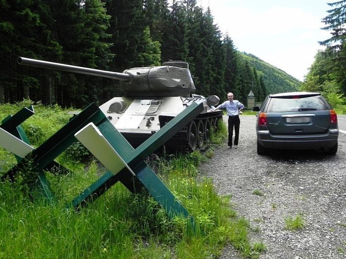 Но вскочив на него, мы невольно вынуждены были остановиться – нечасто на обочине дороги можно лоб в лоб столкнуться с танком Т-34.