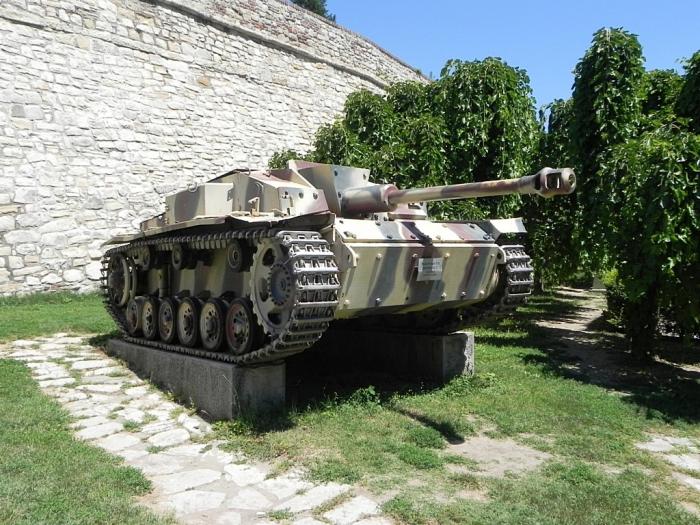 На этом наш визит в Белградскую крепость должен был бы закончиться, но пришлось притормозить. Пространство между стенами оказалось заполнено экспонатами . Здесь выставлены орудия, торпеды и танки.