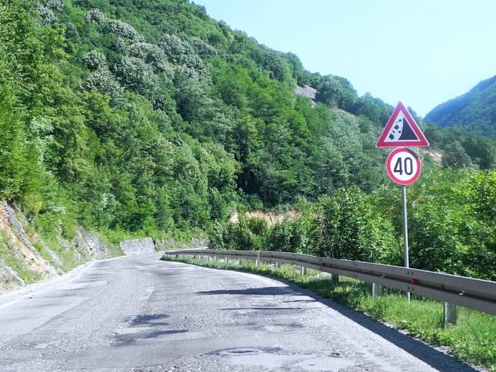 Видимо, для того, чтобы компенсировать объезд, в направлении Ужице Гармин повёл нас короткой дорогой. Ехать стало заметно веселее, но при этом стрёмно, так как на холмистой практически однополосной дороге всегда есть риск нарваться на безбашенного встречного джигита.
