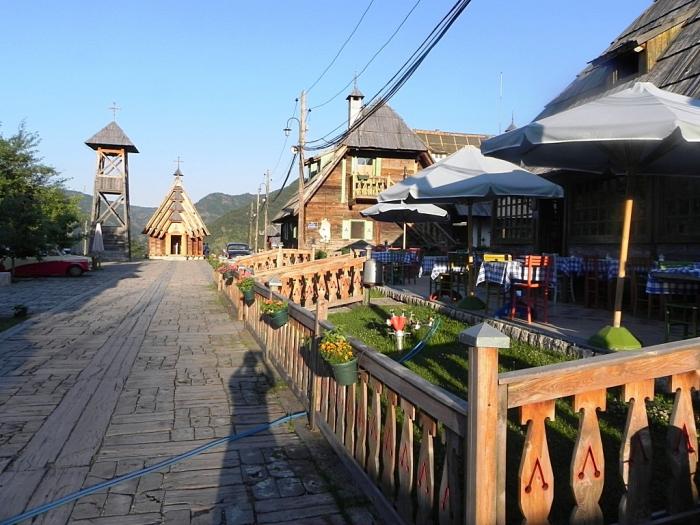 Поскольку прибыли мы в Дрвенград уже вечером, ажиотаж здесь был небольшой. В основном, видимо, постояльцы, коих было не так уж и много. Поэтому на территорию села мы прошли совершенно свободно, и таксу за это никто с нас не взял.
