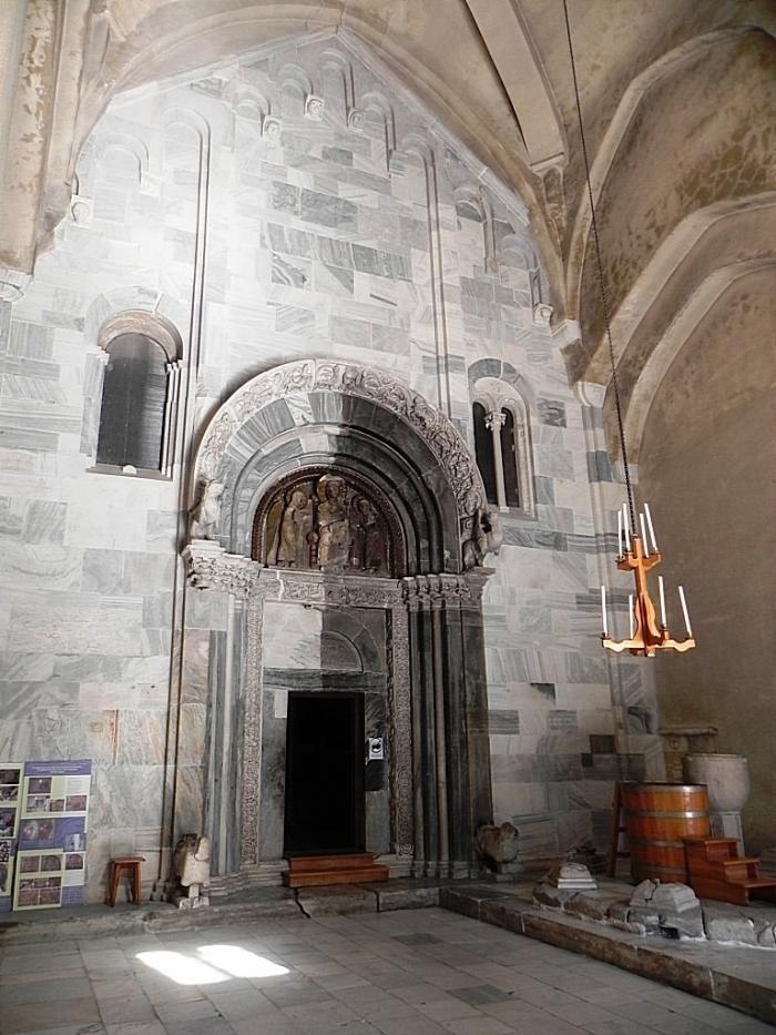 Я затрудняюсь сказать, как эта схема «работала», когда вся церковь целиком строилась в одно время и по единому проекту. Но в нашем случае, когда мы зашли внутрь, стало понятно, что романский притвор строился несколько позже и поэтому был похож на внушительный предбанник.