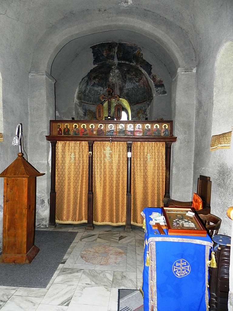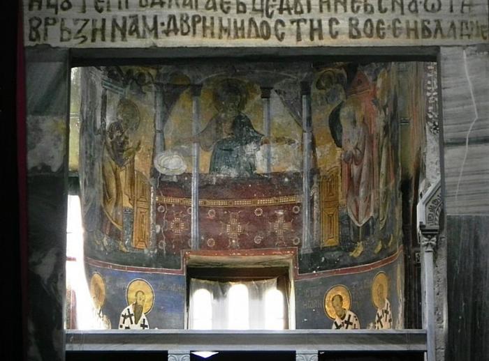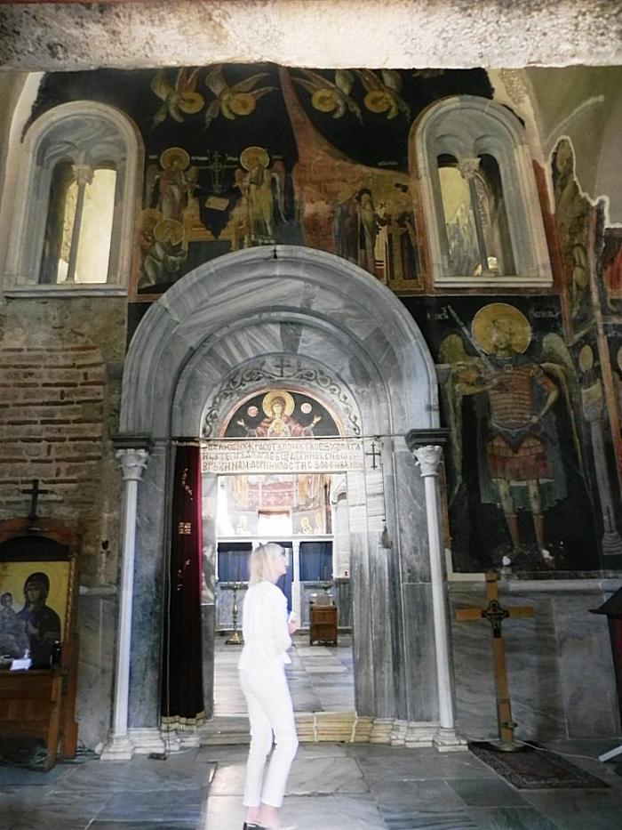Немногочисленные сохранившиеся фрески в храме Богородицы представляют собой огромную художественную и историческую ценность. Прежде всего потому, что они совершенно определённо датируются началом XIII века. Фотографировать внутри было нельзя, поэтому из-за предательских щелчков затвора я сподобился сделать лишь пару подпольных кадров.
