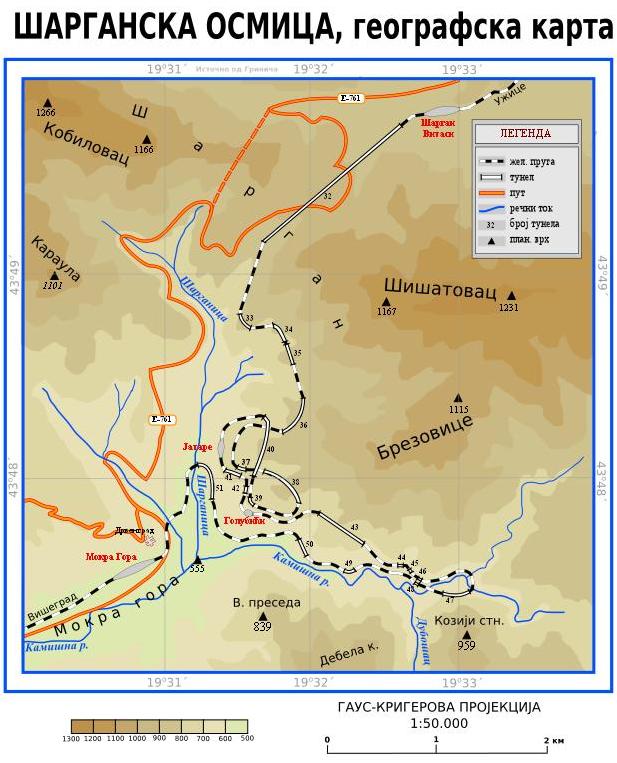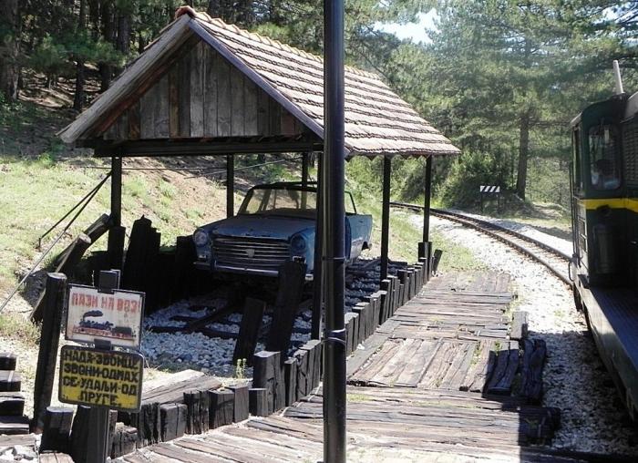 Именно она является стартовым пунктом туристического поезда, курсирующего по узкоколейке . «Шарганская восьмёрка» – самый экзотический отрезок исторической железнодорожной линии Ужице – Вишеград. Движение на этой лини было открыто в 1925 году и продолжалось до 1974 года. Целью её строительства было объединение воедино железнодорожных веток Дубровник-Сараево и Белград-Ужице. Для этого нужно было преодолеть перепад высот 300 метров. Чтобы реализовать проект, инженерам и строителям на 15-ти километровом участке дороги пришлось не только прорубить 22 туннеля и построить 5 мостов, но и так закрутить маршрут, что в самом труднопроходимом месте он вынужден был описать восьмёрку. Отсюда и название дороги.