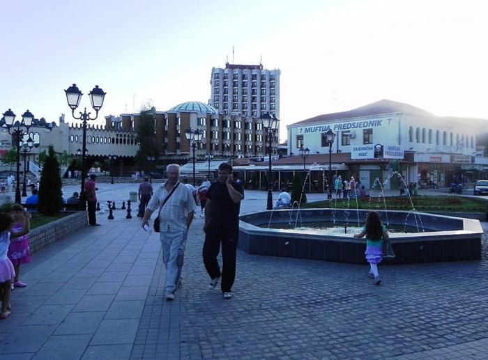 Очевидно, что, несмотря на «полный пакет», в этих девяти квадратных метрах можно было только спать. Поэтому ужинать мы отправились в город. Нам важно было поесть быстро и сытно, поскольку хотелось ещё успеть до захода солнца погулять. В таких случаях «рулит» пицца. Её мы без труда обнаружили в одном из многочисленных кафе в «европейской» части Нови Пазара.