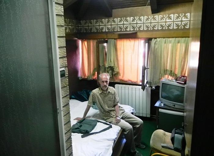 Напротив входа в тесной кабинке сидел суровый пожилой дядечка (т.е. оттоманский стиль выдерживался и внутри хостела). Здесь у него всё было под рукой – прайс, ключи, ручка, телефон, телевизор, холодильник. Поэтому делать свою работу и коротать время этот «менеджер» мог без лишних энергозатрат. Создавалось впечатление, что он будто врос в своё кресло. Цена нас удовлетворила. Взамен ключа дядька потребовал оба паспорта, причём отдавать их обратно после заполнения анкет отказался категорически. Оставлять документы в столь стрёмном месте не очень хотелось – было ощущение, что без них нас среди ночи вывезут и продадут в рабство. Но пришлось смириться. Видимо, решающую роль сыграла очевидность того, что рабы из нас получатся некудышные. На удивление легко подхватившись с кресла, «менеджер» проводил нас в номер. Миниатюрная комната имела в наличие тот же «джентльменский» набор, что и дядькина конторка, плюс кровать.