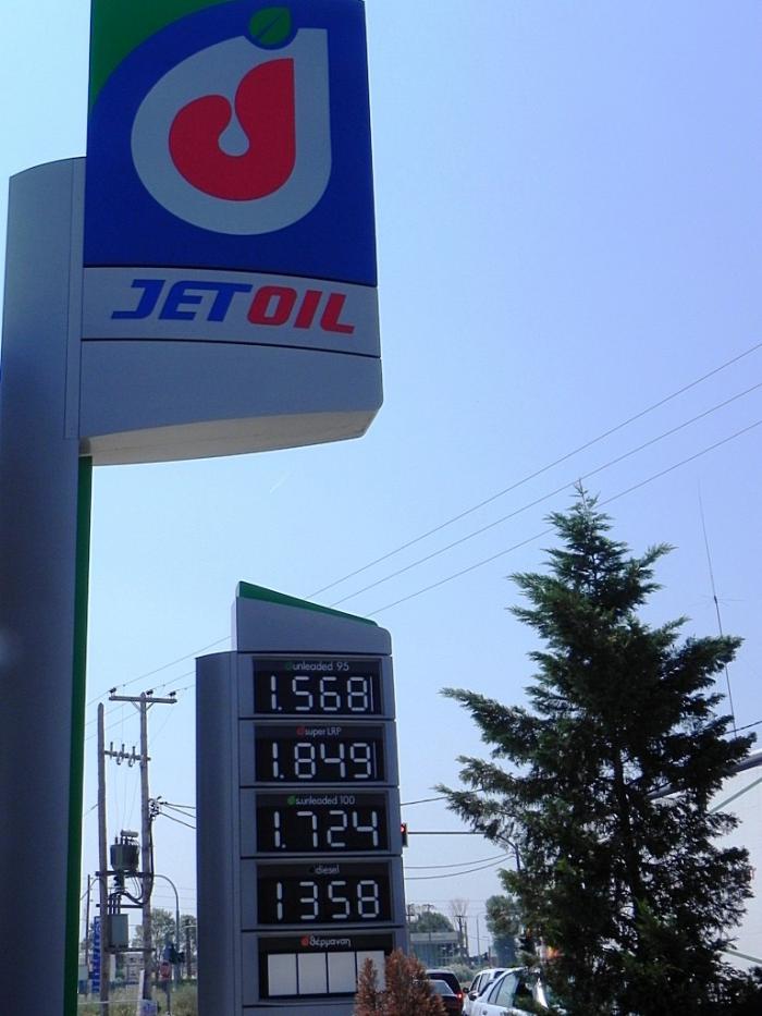 В промзоне на улице Symmachiki Odos, где находится череда бюджетных АЗС, слегка пополнили запас топлива.