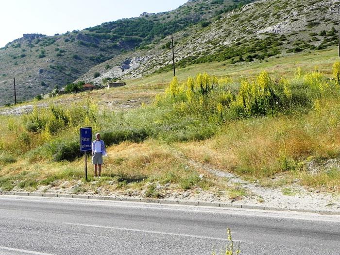 Далее дорога ушла в горы. Мы даже преодолели парочку перевалов. Впрочем, они и по балканским меркам были сравнительно низкими. Приятно порадовало, что все перевалы были оснащены информационными табличками, поэтому я не удержался от того, чтобы сделать традиционное фото рядом с одной из них.