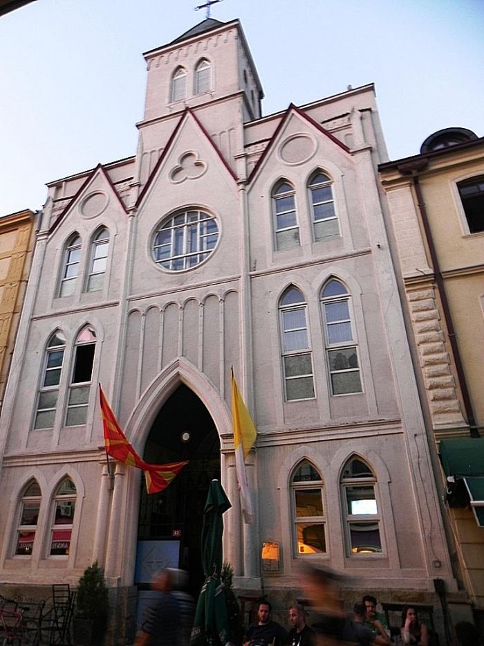 И ещё один интересный с точки зрения исторической значимости Битолы объект мы обнаружили на Широк Сокак – это католический храм св. Сердца Иисуса. Интересно, кому понадобилось его возводить в самом центре города, который расположен в зоне исключительного влияния ислама и ортодоксального христианства? Оказалось, что церковь обязана своим появлением французским миссионерам при прямой поддержке французского консула. И возведена она была всё в тот же оттоманский период истории.