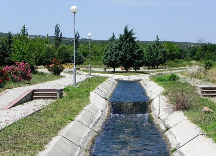Но прежде чем начать знакомство со страной, следовало наконец-то перекусить. В отличие от Греции, найти здесь какое-нибудь подходящее место для пикничка оказалось задачей несложной. Более того, свернув за первой попавшейся деревней на какой-то просёлок, мы вскоре оказались у облагороженного арыка, окружённого элементами парковой архитектуры. Ума не приложу, с какой целью всё это создано в непролазной глуши (возможно, для ежегодных праздников урожая), но для наших потребностей место оказалось идеальным.