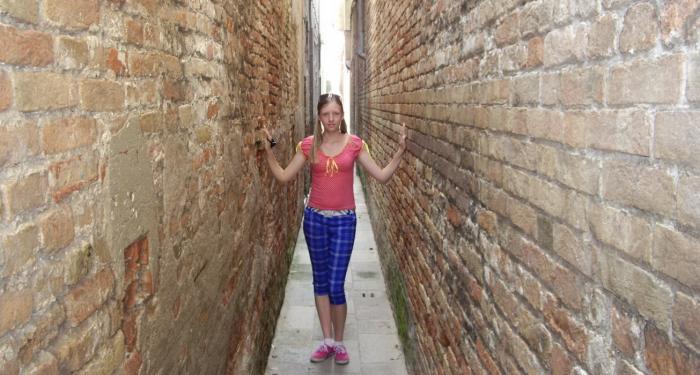 В городе оказалось довольно жарко, и нам было очень приятно ходить по тенистым узким запутанным улочкам. Бродя по ним, мы сделали для себя интересное открытие: в городе нет тупиков, нам ни разу не пришлось разворачиваться и идти обратно. Всё спланировано так, что везде есть сквозной проход. Нашли очень узкую улицу, шириной всего около восьмидесяти сантиметров.