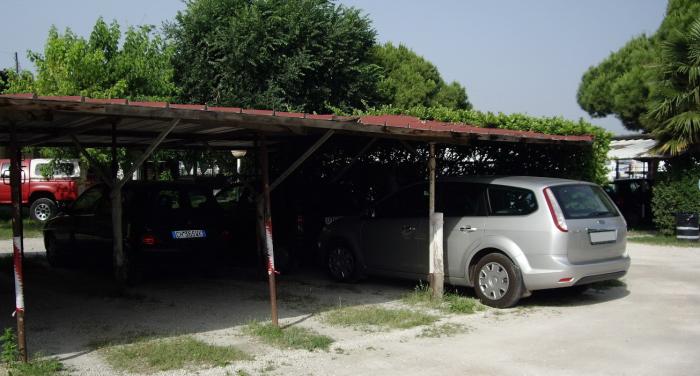 Выехали из кемпинга с таким расчетом, чтобы отплыть в Венецию первым теплоходом в 9 часов. В Punta Sabbioni машину решили поставить на платную стоянку под навес, который оказался довольно затрапезным. Надеюсь, что наши дополнительные два еврика в дальнейшем пойдут на реконструкцию навеса, и когда-нибудь это будет более-менее достойное сооружение.