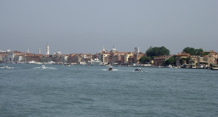 До Венеции мы плыли ровно 30 минут. Скучно не было, всё это время мы наслаждались чудесными видами города и его окрестностей. Вокруг нас постоянно сновали катера и моторные лодки разных калибров – основной транспорт венецианской лагуны.
