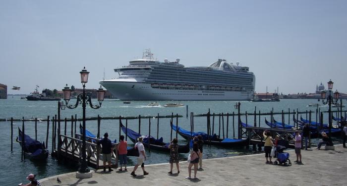 На обратном пути, когда мы шли к причалу нашего теплоходика, нас неожиданно порадовал своим видом красавец круизный лайнер. Он величественно плыл из венецианской лагуны в море. На лайнер смотрели все, кто был в это время на набережной, он как магнитом притягивал к себе взгляды людей. Самыми восторженными зрителями были японцы, они искренне радовались как дети.