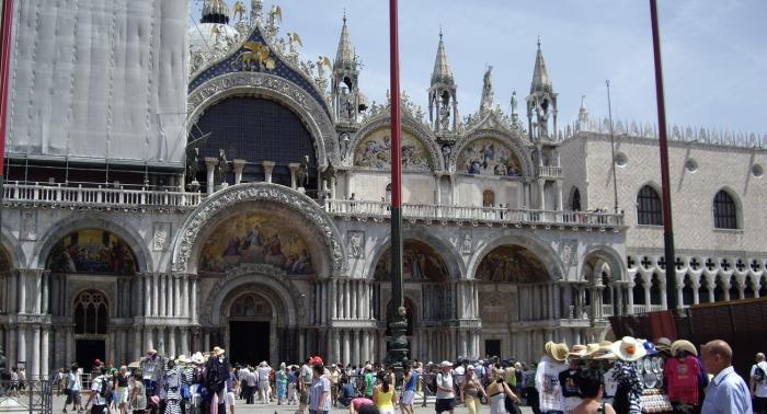 Мы пришвартовались недалеко от самого знаменитого места в городе – площади San Marco и дворца дожей. Площадь оказалась вся забита туристами и сувенирными ларьками. И вдобавок ко всему, вновь приезжающих встречает добрый десяток негров, которые навязчиво торгуют с рук солнцезащитными очками и женскими сумками, размером на полтора ведра картошки. Как будто, в Венецию мы только за тем и приехали, чтобы отовариться очками и сумками.