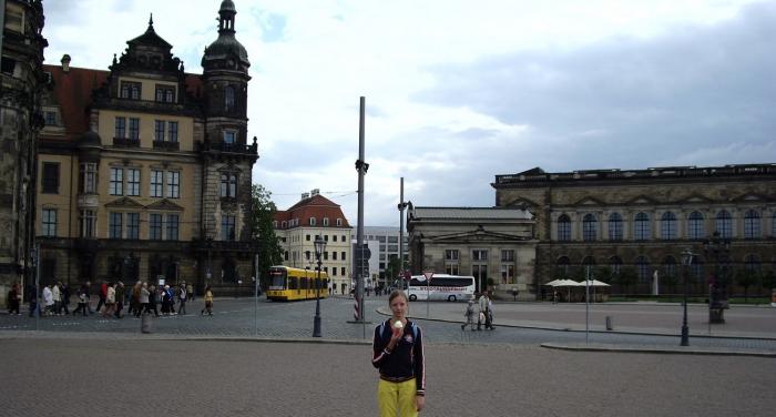 Мы находились в Восточной Германии, бывшей ГДР. Уровень жизни здесь, по сравнению с Западной Германией, заметно ниже. В Дрездене всё более бедно и убого. На улицах большое количество старых машин. Встречаются здания, в которых некоторые окна первых этажей забиты фанерой. Очень много разрисованных стен и везде какая-то неухоженность. Может быть, если бы мы ехали по Германии в обратной последовательности, то впечатление от Дрездена у нас было бы лучше, не с чем было бы сравнивать.