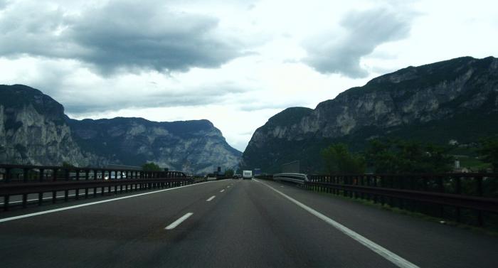 Сегодня мы выезжаем из Италии. С одной стороны грустно, быстро пролетело время. А с другой стороны, мы в предвкушении того, что опять поедем через Альпы. Впечатления и восторги о первом пересечении Альп еще свежи в памяти и нам хочется повторить это снова. По пути в Италию мы проезжали через восточный краешек Альп, горы там не очень высокие. Сейчас мы поедем через Доломитовые Альпы, наверное, они покруче будут и поэтому интересней.