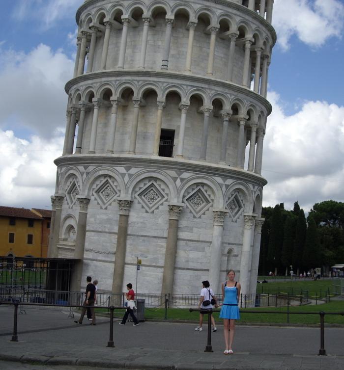 Пизанская башня очень изящная и красивая. Конечно, геодезисты в двенадцатом веке оплошали при строительстве, и сейчас она популярна, в основном только потому, что она «падающая». А ведь башня и сама по себе шедевр архитектуры.