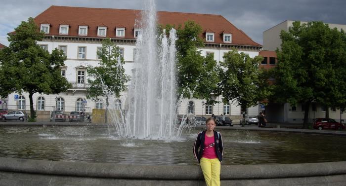 Чем ближе к историческому центру, тем город становится интересней. На площади Palaisplats нас порадовал фонтан с большой чашей воды.