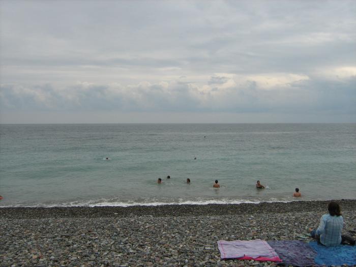 Было пасмурно, но очень тепло. Вода в море тоже тёплая. Но поскольку задачи загорать у нас не было, погода была как раз «то, что нужно».