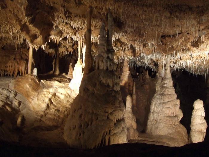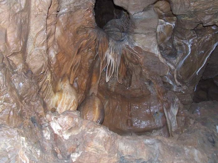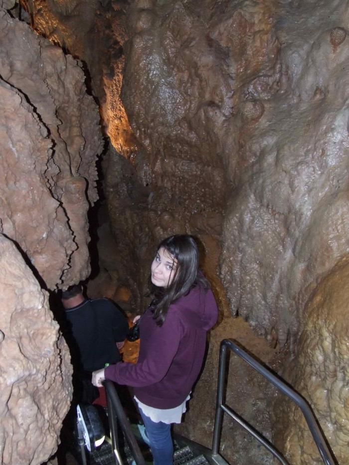 Всего в комплексе открыто 5 пещер, но Пункиевы с пропастью Мацоха в конце самые заманчивые для посещений. Но не возвращаться же… Столько добирались по серпантину через густые леса – красиво, но неуютно!.. В общем, побывали в Бальцарке, получили представление. Экскурсия час в горе, где узкие переходы сменяются огромными залами с интересными природными натеками извести- порой это не просто морковки сталактитов и сталагмитов, а «цветы», «короны», «водопады» — все подсвечено, включают музыку (акустика в больших камерах потрясающая) и в конце небольшой музей про пещерных животных и древних людей — на местных находках.