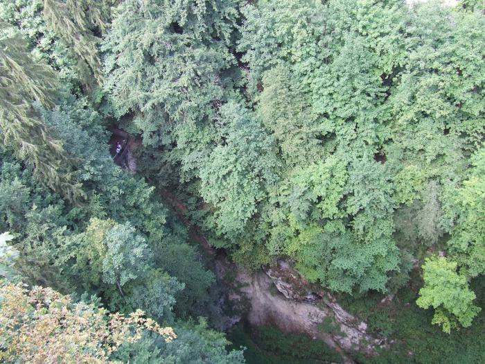 Давно планировали – и все никак. Сталактитовые Пункевы пещеры, подземные озера на лодках, пропасть Мацоха – ну очень хотелось. Пережили узкий серпантин через лес, ущелья и маковые поля, доехали до обзорной площадки у пропасти Мацоха к 14.30.