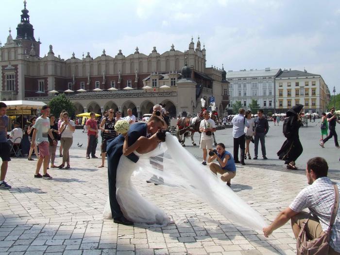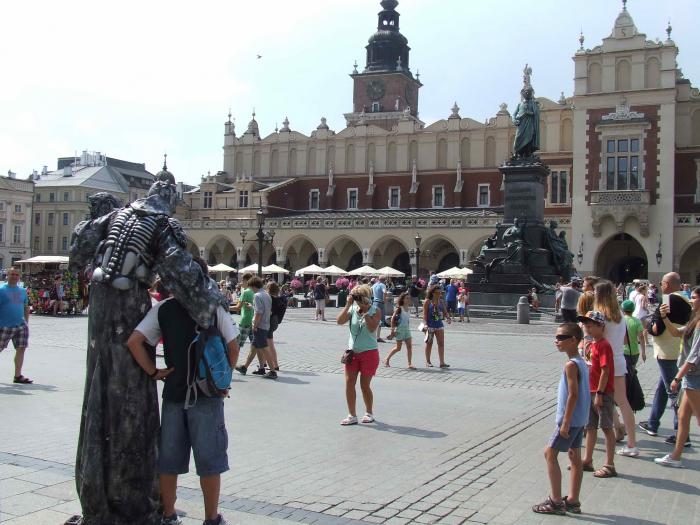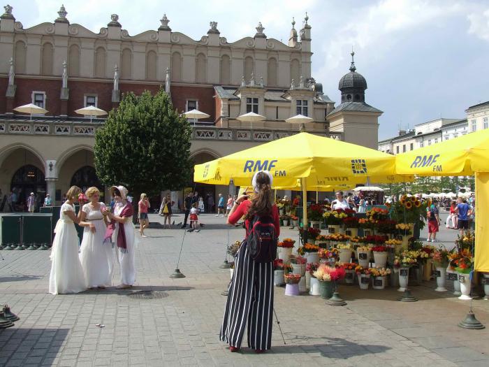 Знаменитые торговые ряды Сукенице, мимы, уличные музыканты, Мариацкий костел, скульптура связанного Эроса, экипажи для туристов, а также теплый дождь и яркое солнце — таким запомнился Старый город Кракова.