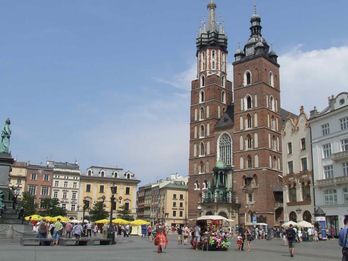 Рыночная площадь в старом центре Кракова — одна из крупнейших в Европе.
