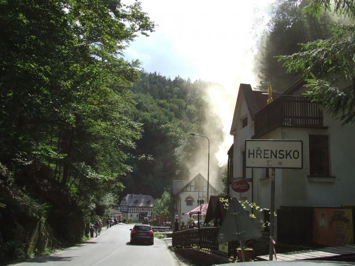 Очень красивый курортный городок Хрженско в Чешской Швейцарии расположен на границе с Германией, на берегу прозрачной реки Каменицы, что берет свое начало в горах. Здесь есть все для туристов: отели, пансионы, ресторанчики. Как раз недалеко отсюда начинаются пешие маршруты по Чешской Швейцарии. Через город идет дорога в Чехию из Дрездена. От Дечина до Хрженско ходит пароход. Многие приезжают сюда на машинах. Раньше граница была закрыта. Но после вступления Чехии в Евросоюз все изменилось. Сейчас это пограничный переход. Прекрасный вид на красивейшие лесистые скалы удивительных форм и размеров открывается уже при приближении к чешской границе. Эти скалы – настоящее чудо природы/ Необычное явление в городке – оживленная торговля гномами для огородов.