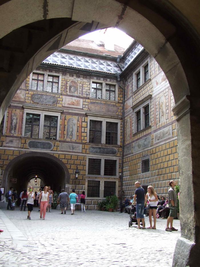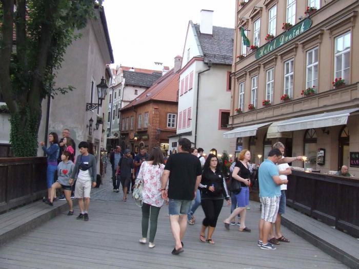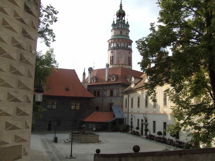 Совершеннейший восторг от увиденного и особенно от экскурсовода. Полная уютная чешка с одесским юмором и кавказским акцентом. Масса информации и позитива. (Кстати, она же комментирует одну из программ канала ТВ-3 про приведения старых чешских замков… ). Посоветовала посетить Чески Крумлов в дни летнего солнцестояния, когда здесь проходит праздник пятилепестковой розы. Город словно погружается в средневековье. Все жители облачаются в старинные костюмы и начинается карнавал. Естественно, пиво льется рекой. Но, посетовала наш гид, некоторым приходится терпеть неудобства — ее костюм, к примеру, точная копия старинных бархатных платьев со всеми необходимыми корсетами, каркасами и каменьями, после дождя весил 25 килограмм…