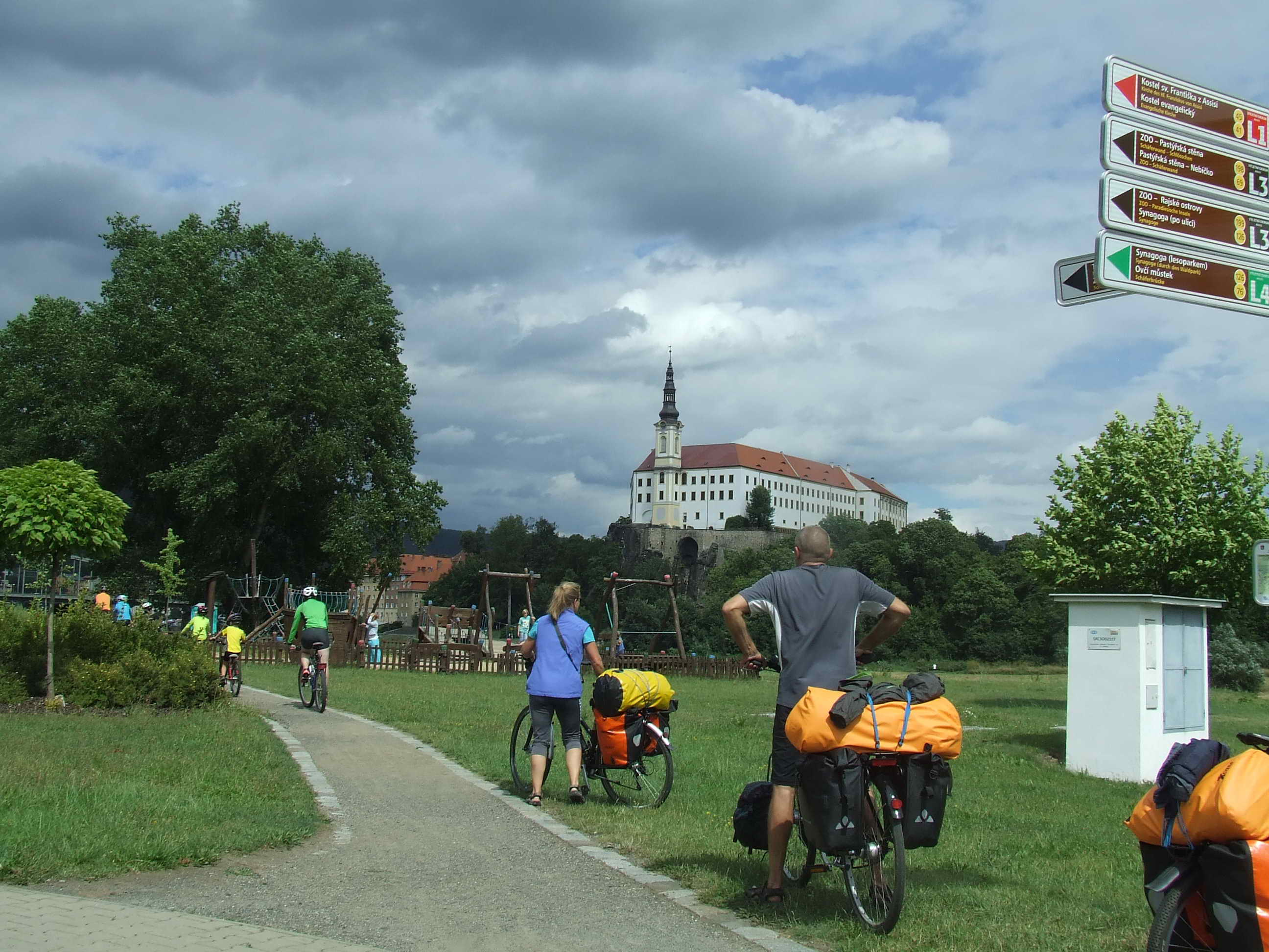 Остановились в хостеле – но номер был уютный, с балконом и шикарной ванной. Дечин оказался весьма приятным городком, где традиционно есть старый центр с замком и даже большим розарием при нем, хотя все это нам осталось известно из путеводителя, потому как в планах был аквацентр на термальной воде и, далее, ресторан. На большее, кроме прогулки до отеля по набережной Лабы нас не хватило. Но город небольшой, общее представление получили вполне.