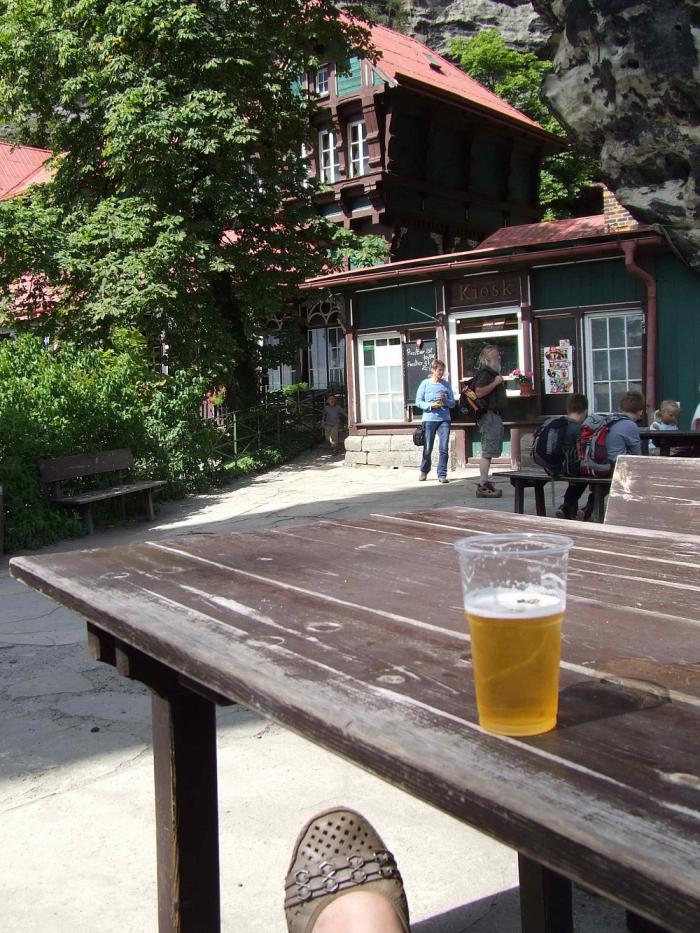 Я, в общем, своим забегом довольна. Ходила к Правчицкой Бране – это самая большая в Европе арка из песчаника, и рядом Соколиное гнездо, бывший охотничий домик постройки 1882 года для гостей местных графьев клана Клари — Алдрингенов, которые владели этими землями. Теперь тут – ресторан в стиле 100-летней давности и художественная галерея фоторабот этих мест. Маршрутов по этому природному парку много, есть пешие, есть на лодках к водопадам, но Правчицкая Брана – символ этих мест. Как под ней не посидеть, не выпить бокальчик пива. Кстати, непонятно, как сюда вообще доставляют продукты и свежее пиво? Наверное, вертолетами…