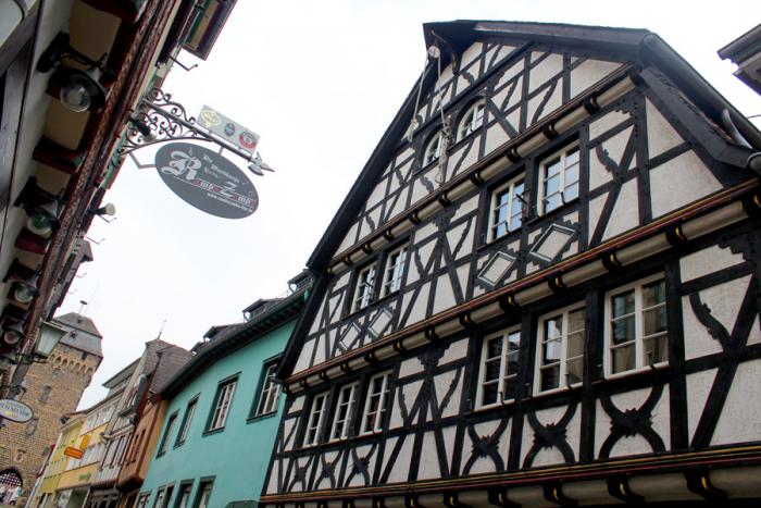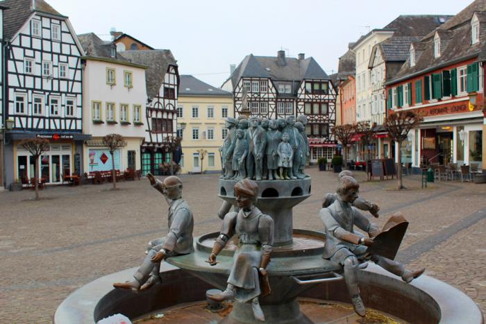 Возле ратуши очень интересный фонтан с фигурами, у которых руки и ноги на шарнирах. Горожане могли показывать свое отношение по средствам жестов этих фигурок. У ворот отметка уровня воды. Рейн бывал очень крут! У противоположных ворот фигурка мальчика из местной легенды. И всё в этом роде. В общем, о туристах подумали, есть с чем сфотографироваться. Очень приятный городок с атмосферой и настроением.