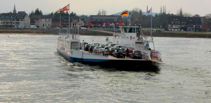 Итак, мы едем вдоль Рейна, по дороге рассматривая руины замков, города на том берегу. По опорам моста узнали Реймаген. (История про то, как американцы захватили Реймагенский мост, но сами же его и разрушили случайно). Теперь на Среднем Рейне мосты – большая редкость, Долина реки охраняется Юнеско и мосты ей не светят. А вот паромы работают, как часы, даже зимой.