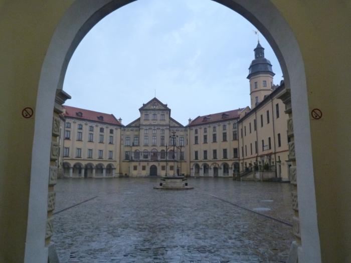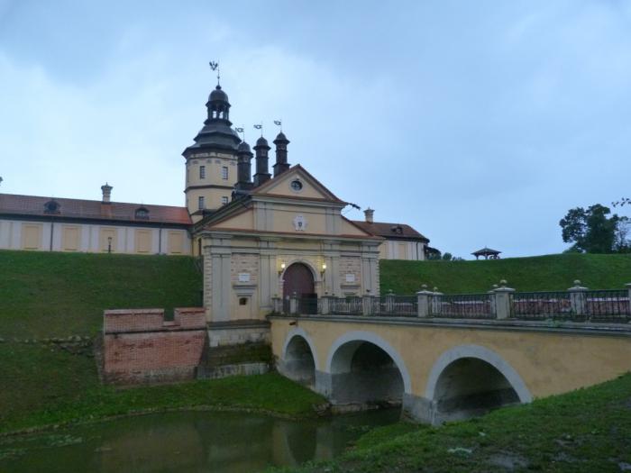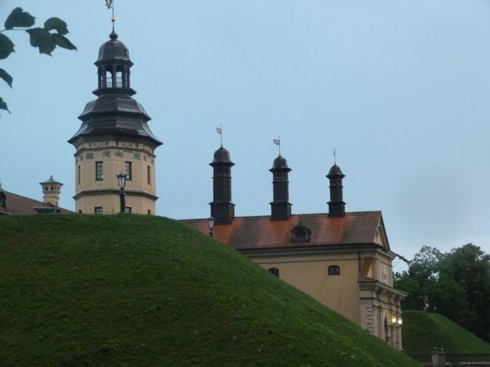 , в отличие от конфетно-пряничного собрата в Коссово, — это вполне себе серьезное фортификационное сооружение. Деревянная крепость тут стояла еще в XIII веке, а в конце XVI века, когда эти земли достались богатейшей и влиятельнейшей в ВКЛ семье Радзивиллов, сюда пригласили итальянского архитектора и стали строить мощную крепость по последнему слову тогдашней европейской науки. После этого замок попеременно осаждали то русские, то шведские войска. В промежутках его перестраивали под моду очередного века, поэтому всяких архитектурных стилей здесь намешано на все вкусы.