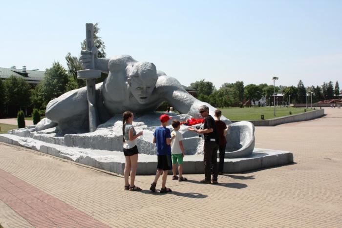 Думаю, все в нашей стране примерно представляют себе, в чем состоял подвиг бойцов Брестского гарнизона. Здесь полегли почти 3.5 тысячи наших солдат, вступивших в бой с наступавшей 45-й пехотной дивизией Бундесвера уже в первый день войны. Подвиг этот был неправдоподобен по многим причинам. Прежде всего, Брестская крепость вообще не предназначалась для обороны в этой войне. Она была построена еще в XIX веке, а сто лет спустя утратила всякое оборонительное значение. Когда Советский Союз получил свою долю в Польше по пакту Молотова-Риббентропа, прежние оборонительные рубежи были оставлены, войска были перемещены на запад, к Брест-Литовску. Наше командование планировало использовать Брестскую цитадель только для размещения личного состава, а рядом отстроить новую границу. Не успели. В результате, частям Советской армии пришлось обороняться там, где их застало внезапное нападение. По сути, прямо в казармах. Причем, туда же из уже павшего Бреста сбежались и семьи военнослужащих. Почти сразу обнаружился главный недостаток этой крепости — поскольку к осаде ее не готовили, то и запасов воды или тайных выходов к берегу Буга не предусмотрели. В результате, окруженные защитники вынуждены были добывать себе воду под шквальным огнем противника. Мы попали сюда как раз в такую жару, какая стояла тогда, по воспоминаниям, здесь в Бресте. По контрасту с тихим течением реки, мемориал Жажда производит особенно сильное впечатление.