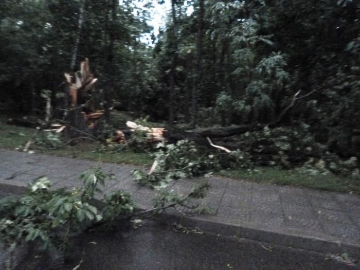 Всем этим трэшем мы наслаждались в одиночестве. Отставшие от нас родственники, тем временем, пробивались по трассе сквозь ливень. В одном месте упавшее дерево уже перегородило шоссе на их пути.